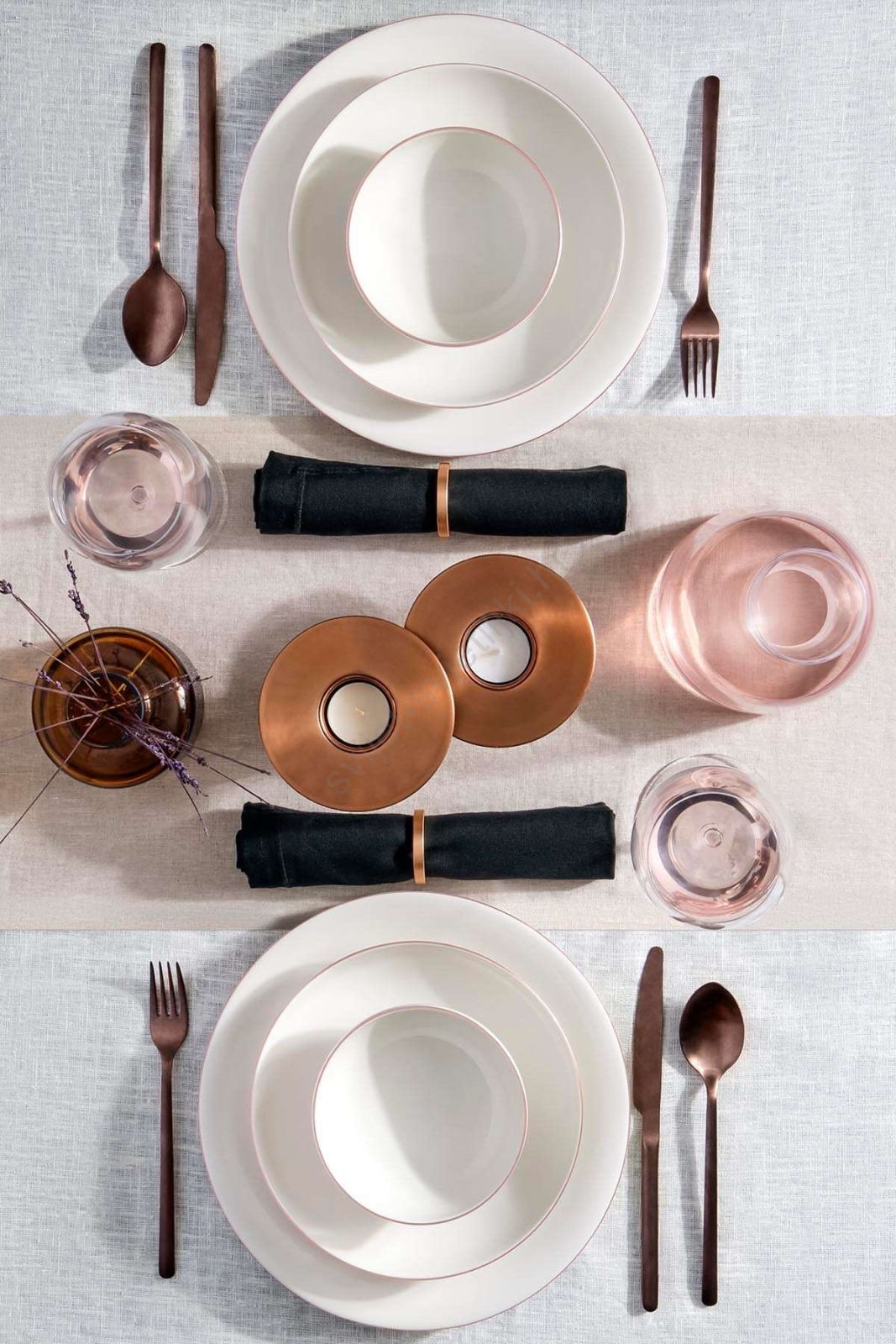 18-dijelni set za jelo, bijeli s bakrenim detaljima, od porculana