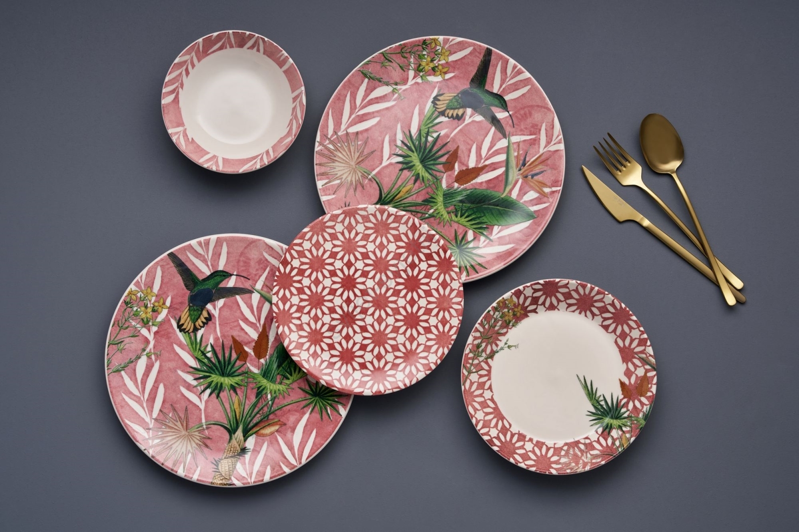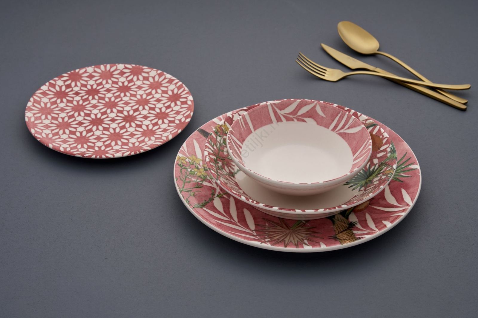 24-dijelni keramički set za jelo, crvena/zelena/bijela