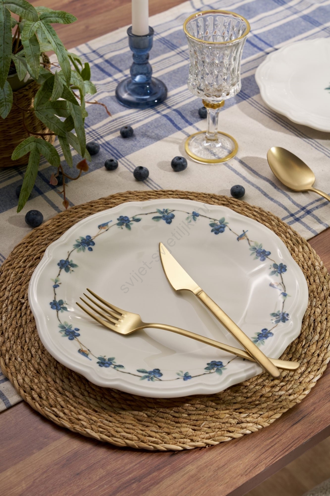 24-dijelni porculanski set za jelo, bijele/plave boje