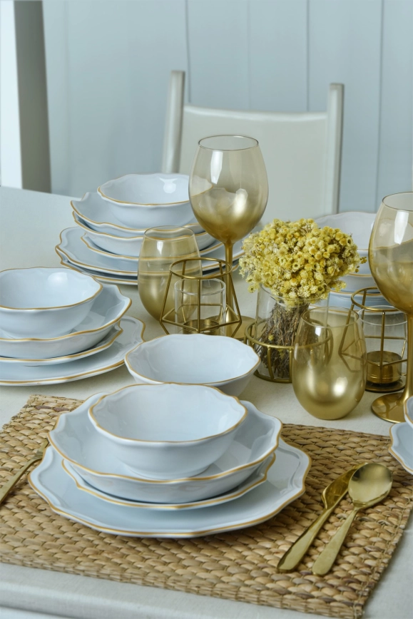 24-dijelni set za jelo, bijela/zlatna/kamenina