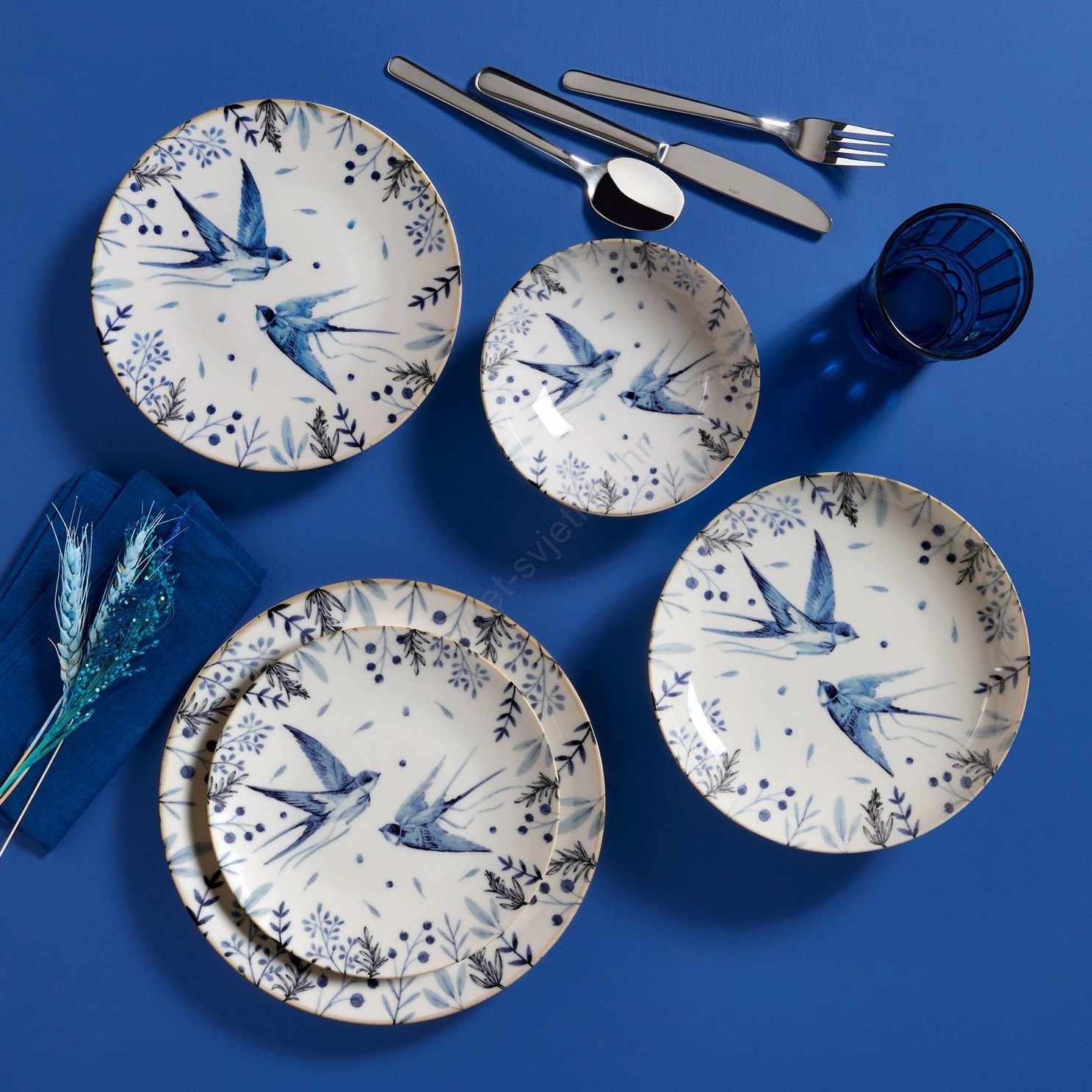 24-dijelni set za jelo, bijele/plave boje, porculan