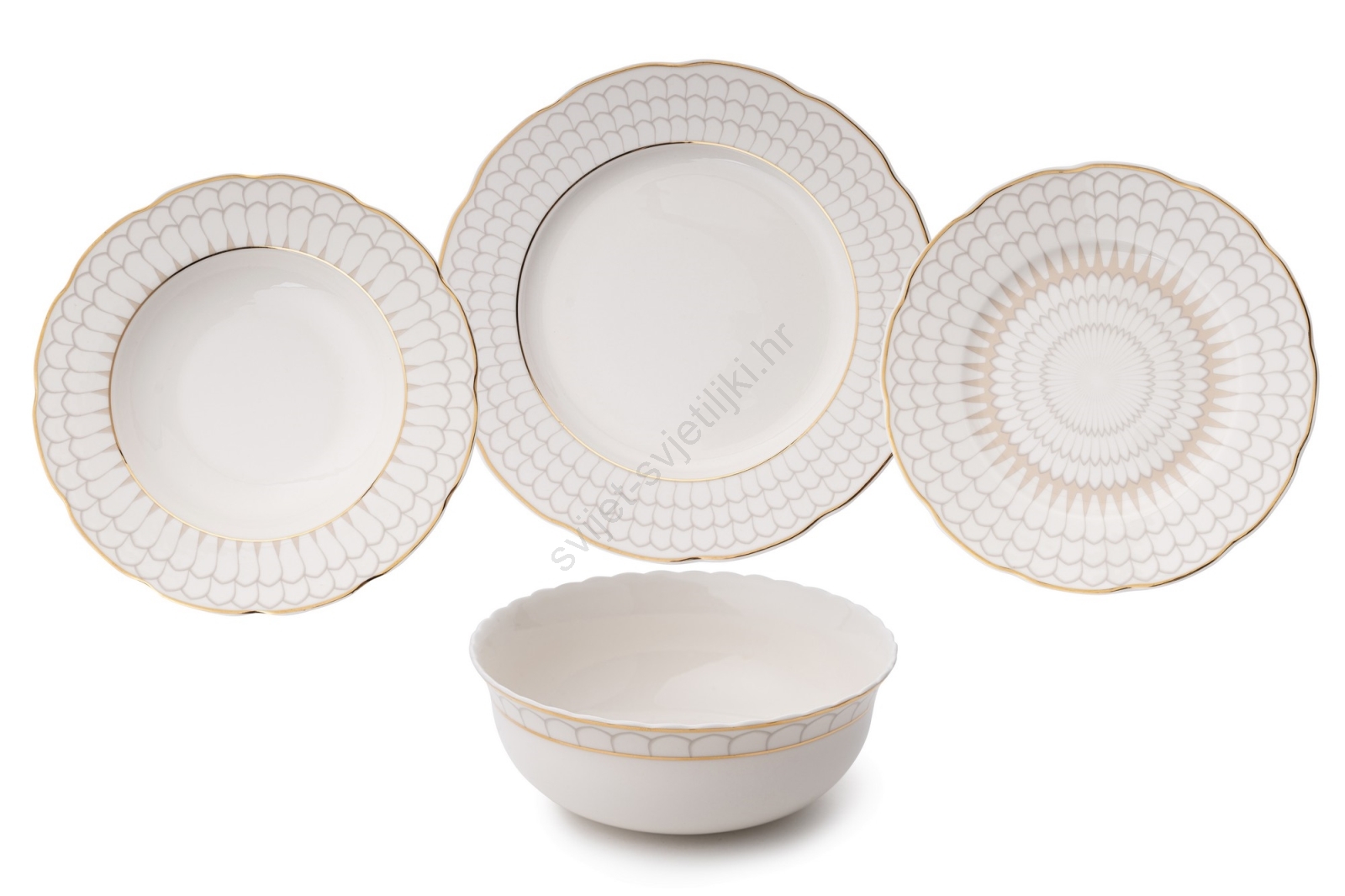 24-dijelni set za jelo, bijeli/zlatni, porculan