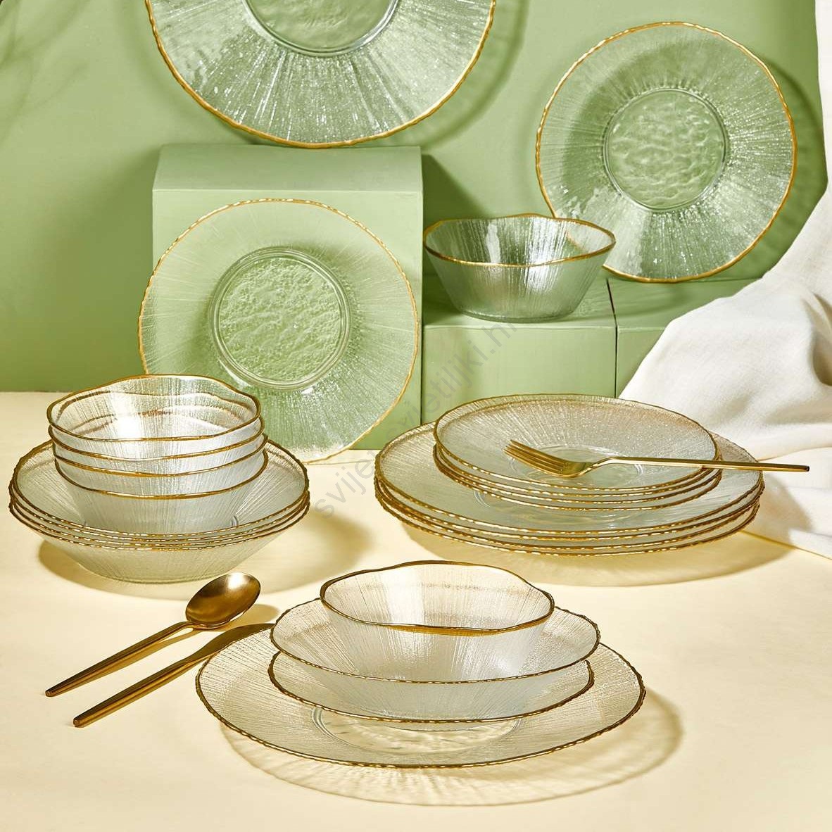 24-dijelni set za jelo, prozirno/zlatno/staklo