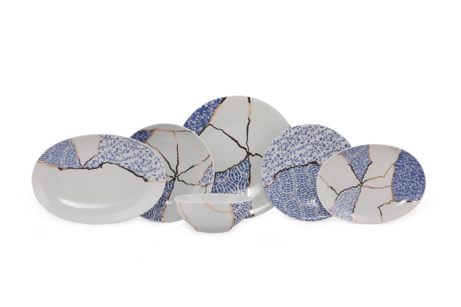 28-dijelni set za jelo, bijela/zlatna/plava, porculan