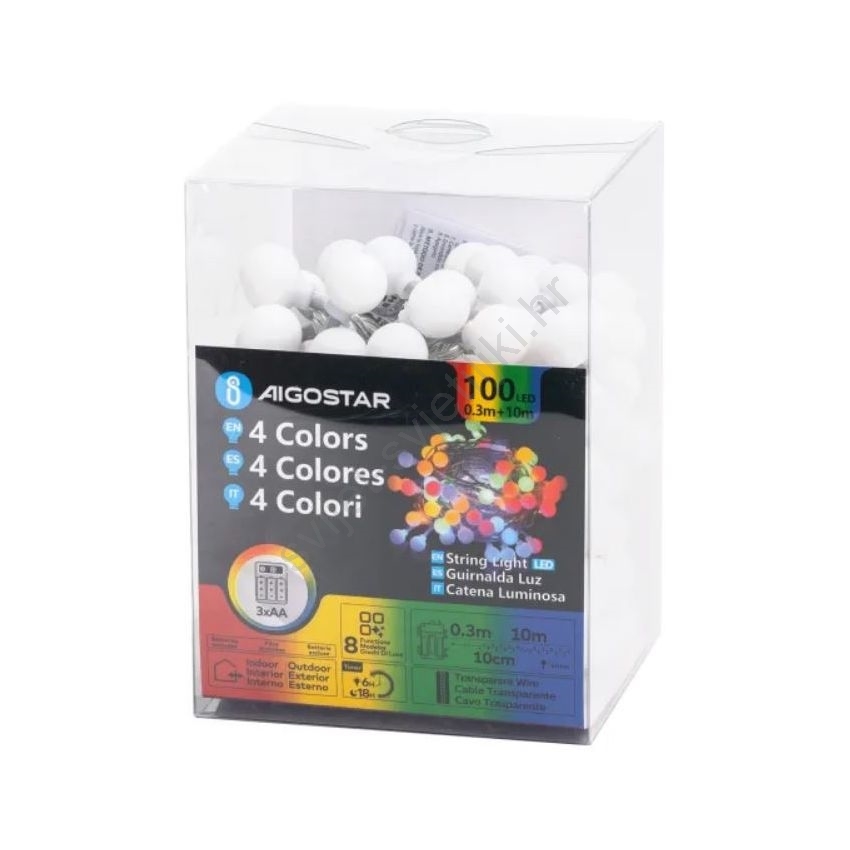 Aigostar - LED vanjski niz 100xLED/3xAA/8 funkcija 10,3 m IP44 višebojni