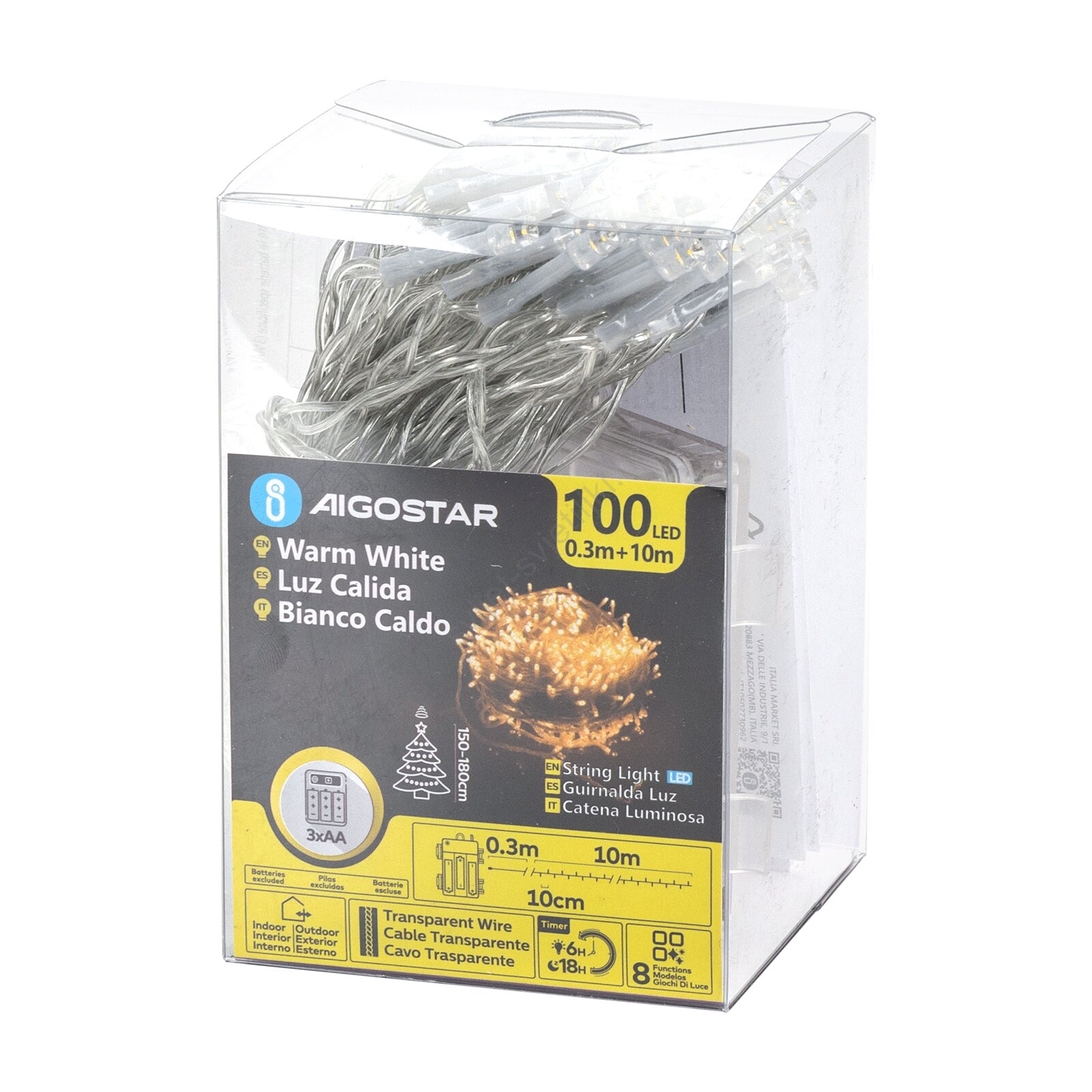 Aigostar - LED vanjski svjetlosni lanac 100 LED/8 funkcija, 3xAA, 10,3 m, IP44, topla bijela