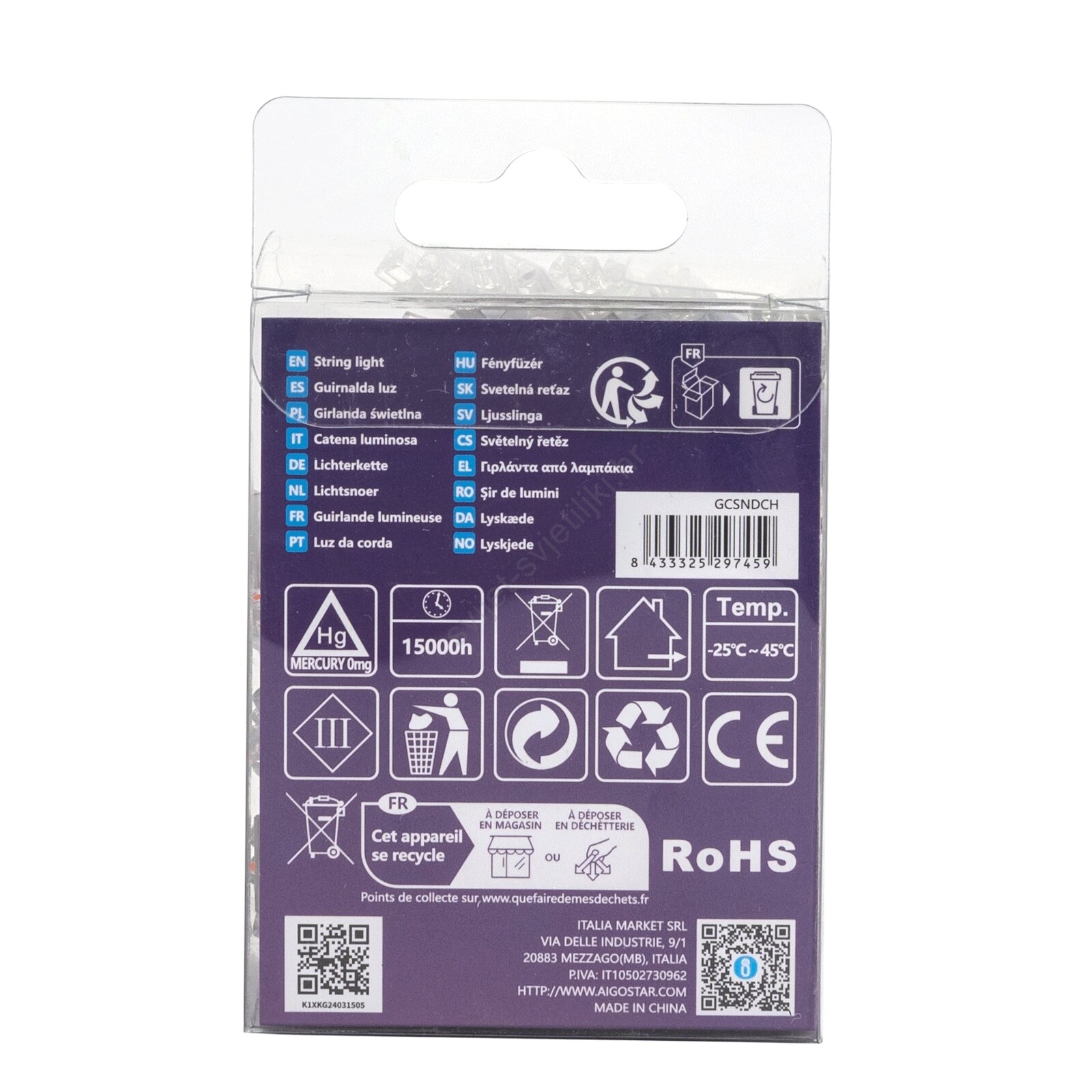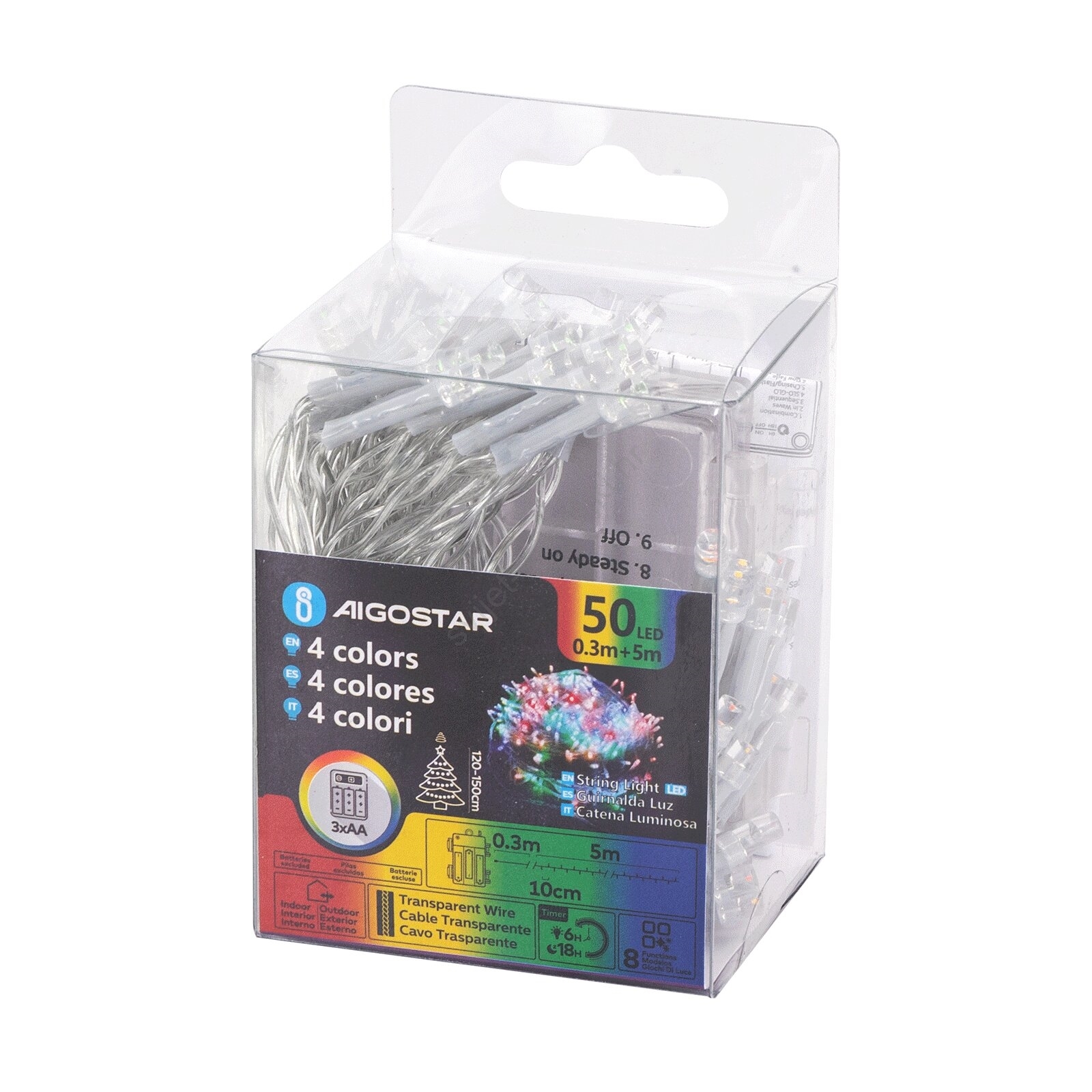 Aigostar - LED vanjski niz 50xLED/8 funkcija 3xAA 5,3 m IP44 višebojni