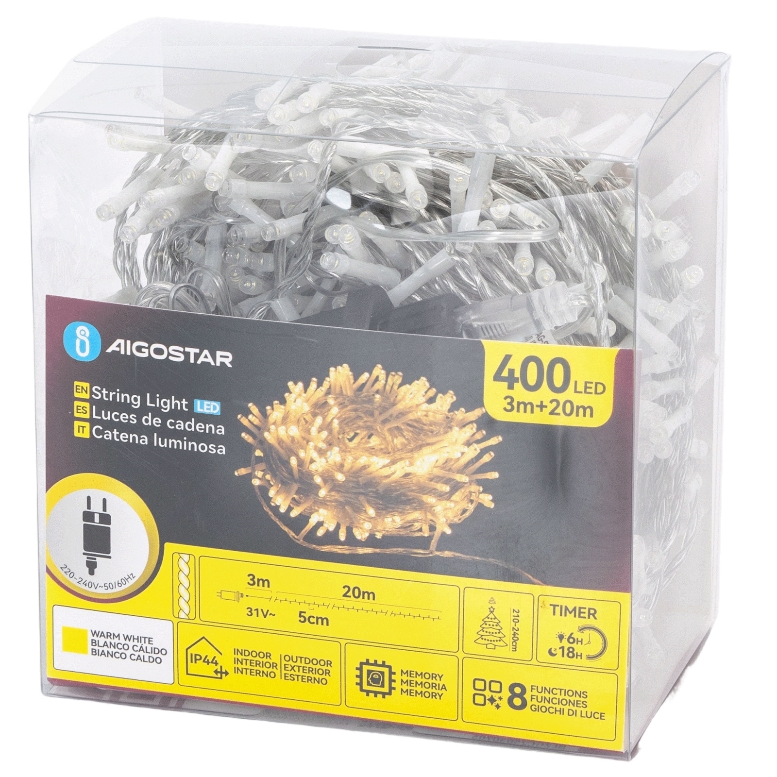 • Aigostar - LED vanjski niz 400xLED/8 funkcija 20 m IP44 toplo bijela