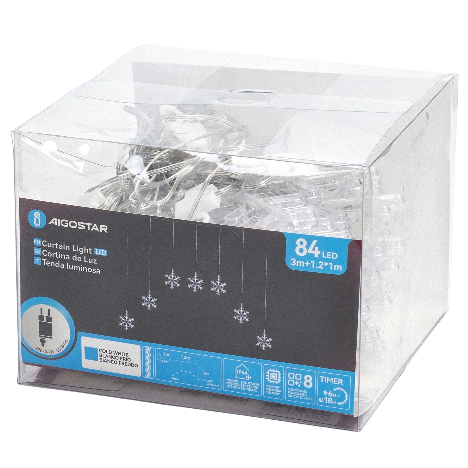 Aigostar - LED vanjski božićni niz 84xLED/8 funkcija 1,2x1m IP44 hladno bijele pahuljice