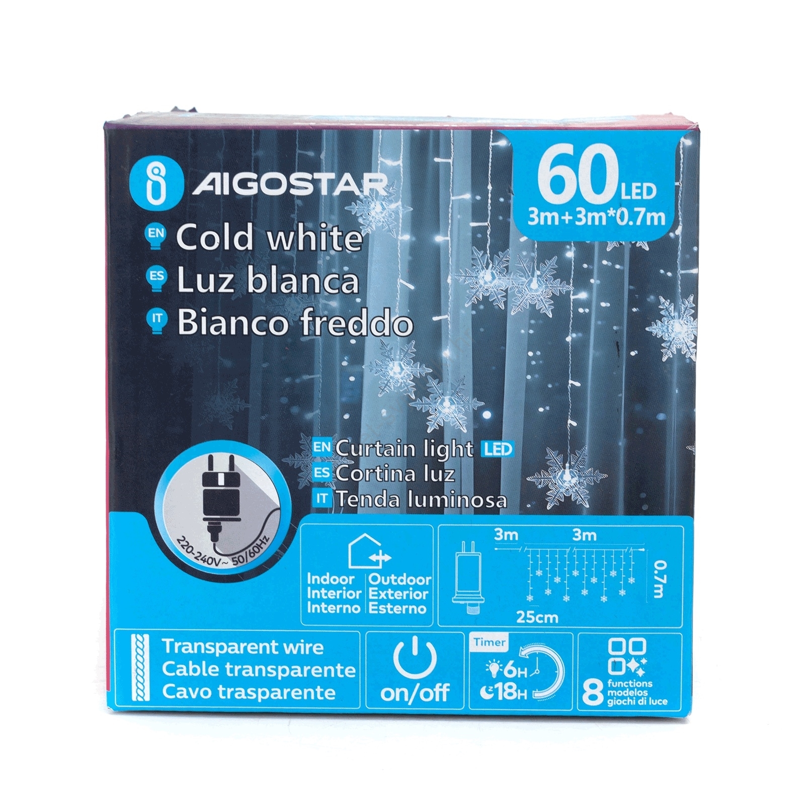 Aigostar - Vanjski LED lanac 120xLED/8 funkcija 3x0,7m IP44 hladno bijela + daljinski upravljač