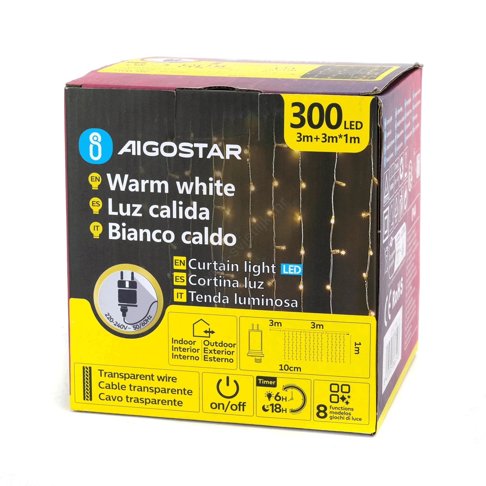 • Aigostar - LED vanjski božićni lanac 300xLED/8 funkcija 3x1m IP44 topla bijela + daljinski upravljač