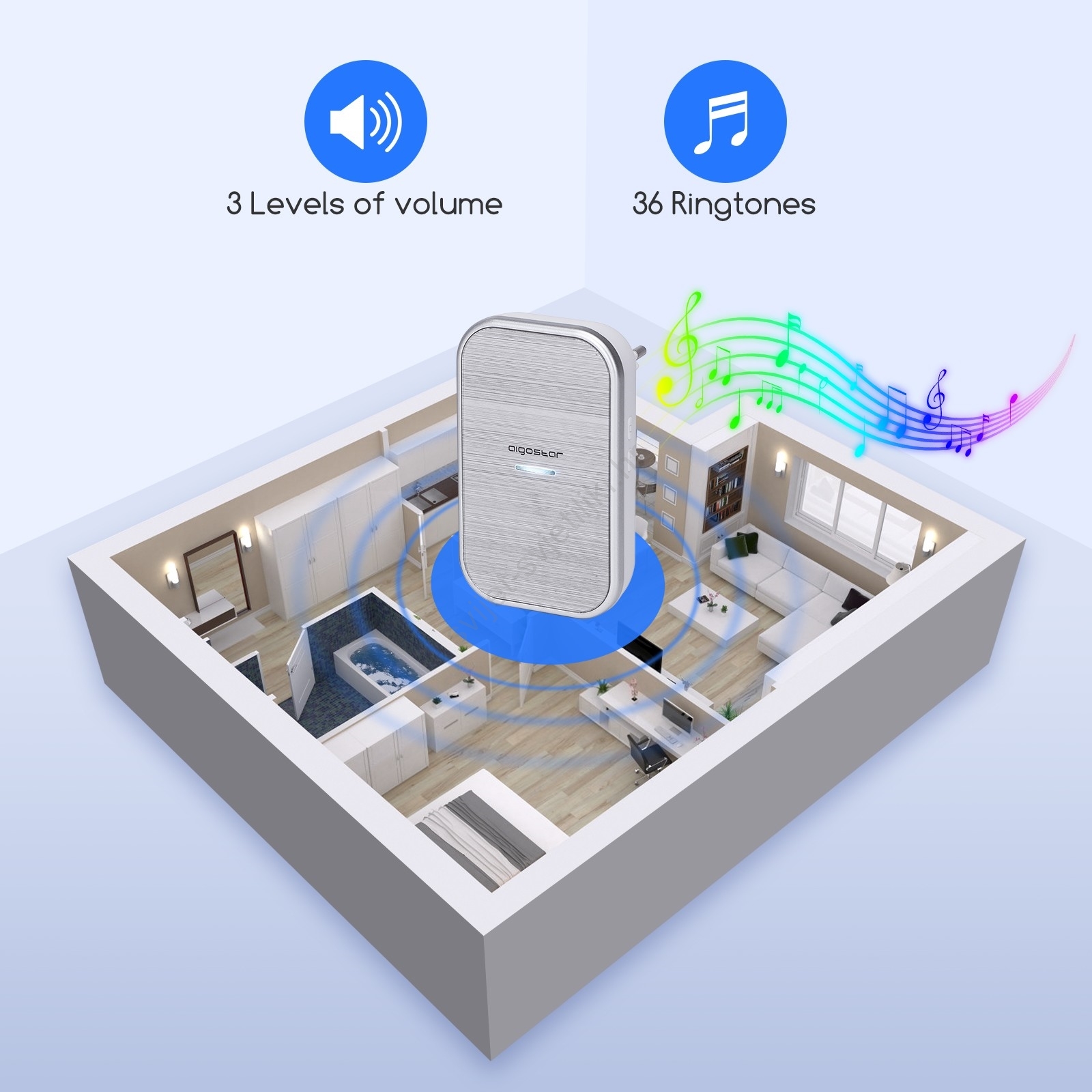 Aigostar - Bežični zvončić za utičnicu 230V/12V IP44, srebrni