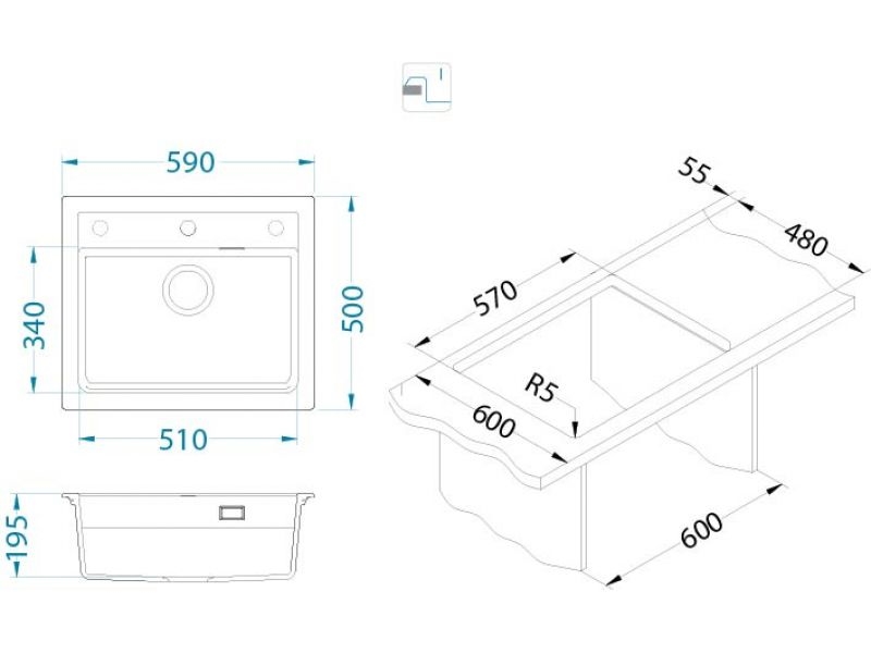 • ALVEUS 1148162 - Kuhinjski sudoper ATROX 59x50 cm granit/crna