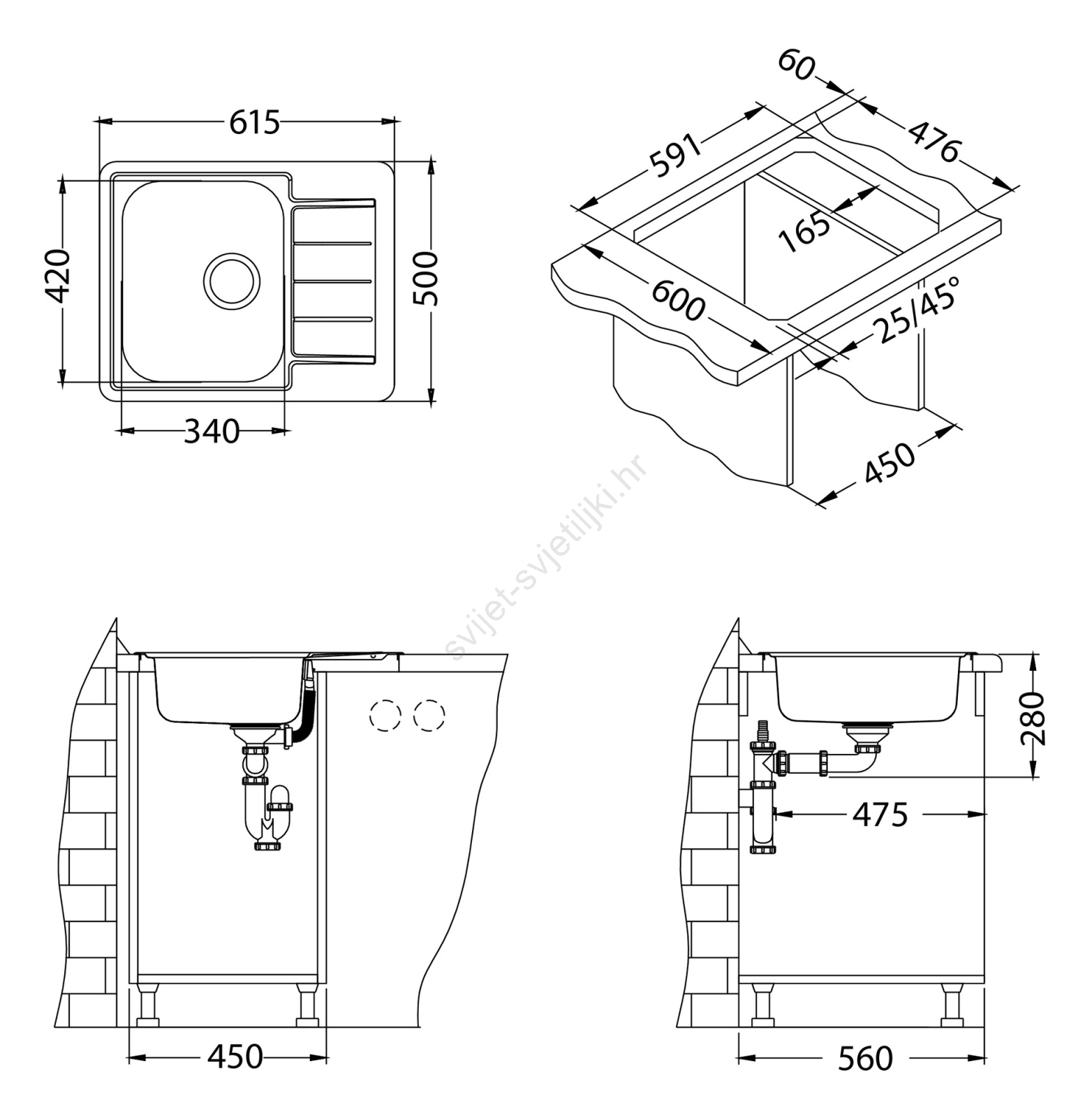 • Sadržaj pakiranja: inox sudoper, učvršćenja i brtve, košarasti ventil 3 1/2, sifon s priključkom za perilicu posuđa.