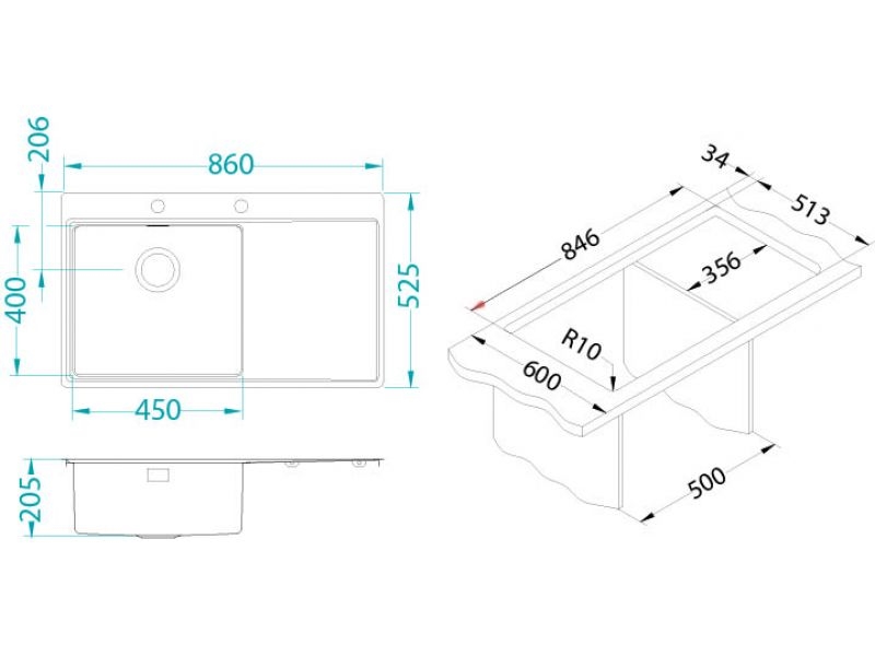 • ALVEUS 1103653 - Kuhinjska sudopera PURE 86x52,5 cm satin, desna