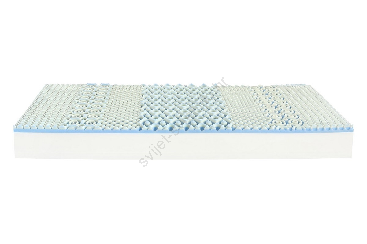 • Gornji sloj s 3D memorijskom pjenom u kombinaciji s hibridnom hladno prešanom pjenom – uključujući 7-zonski wellness profil i donji sloj Flexi hladno prešane pjene s masažnom profilacijom.