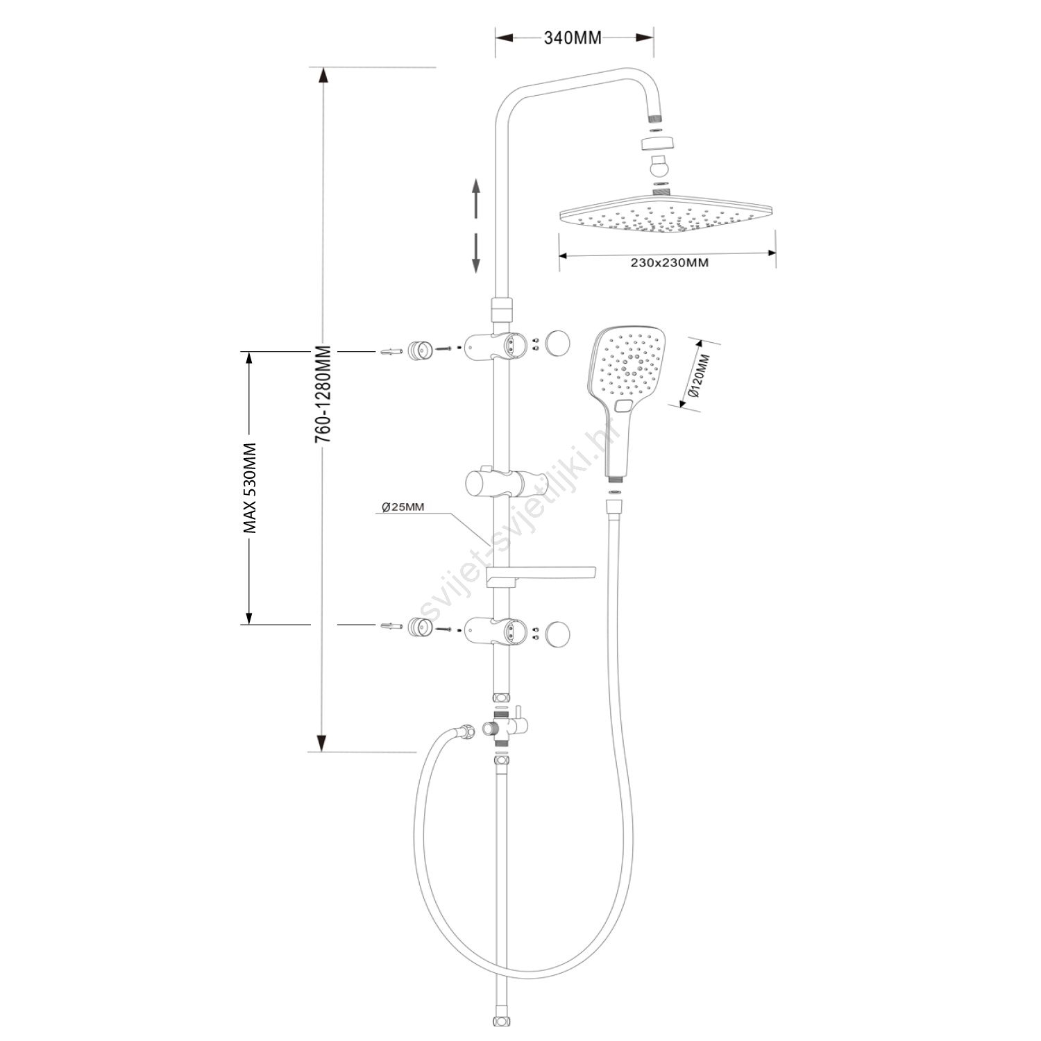 • Tuš kolona izrađena je od nehrđajućeg čelika.