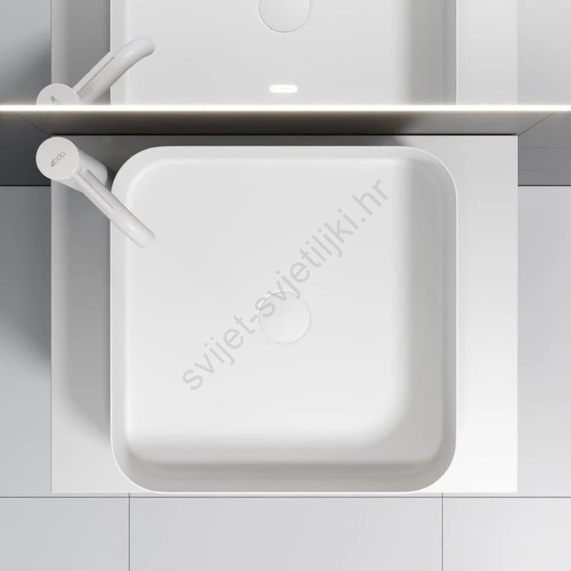 • Umivaonik je predviđen za ugradnju na radnu ploču, što omogućuje fleksibilno postavljanje i kombiniranje s različitim vrstama kupaonskih ploča.