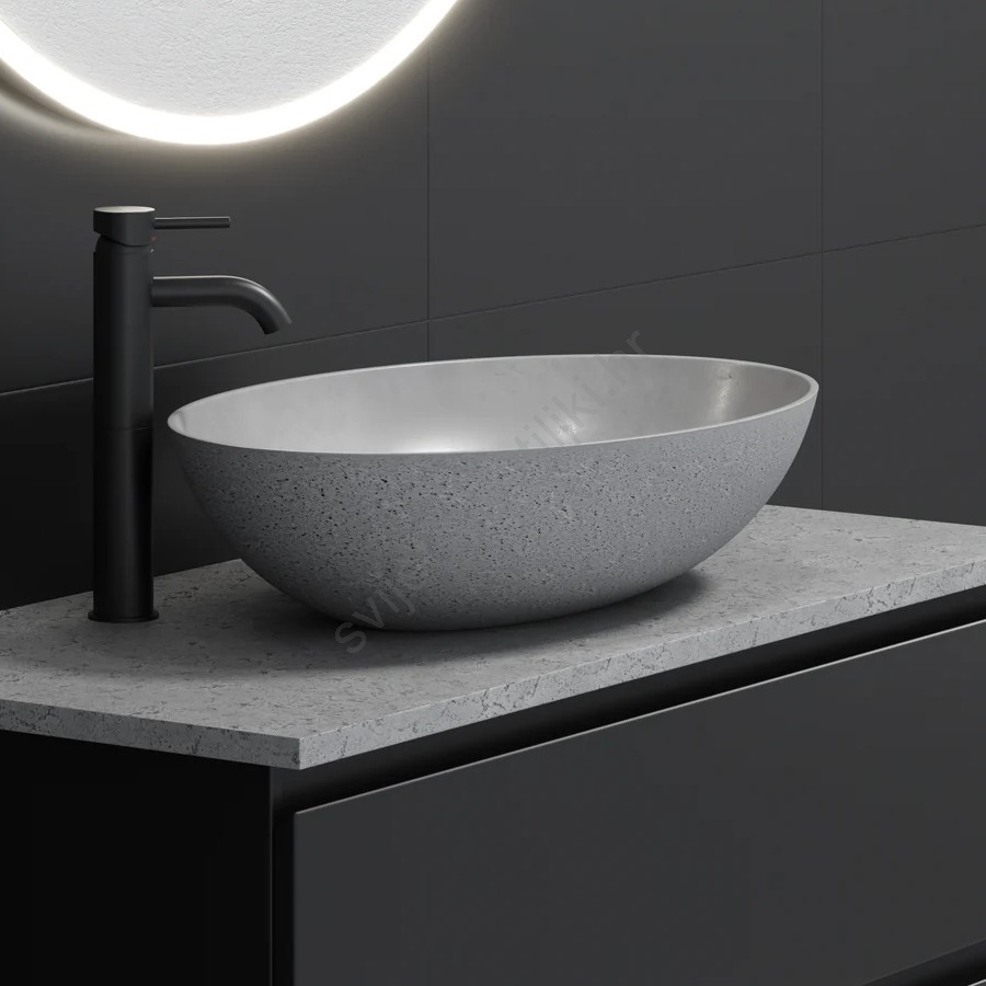 • Izrađen je od 100% prirodnog betona s površinskom obradom koja štiti radnu ploču od upijanja vode.