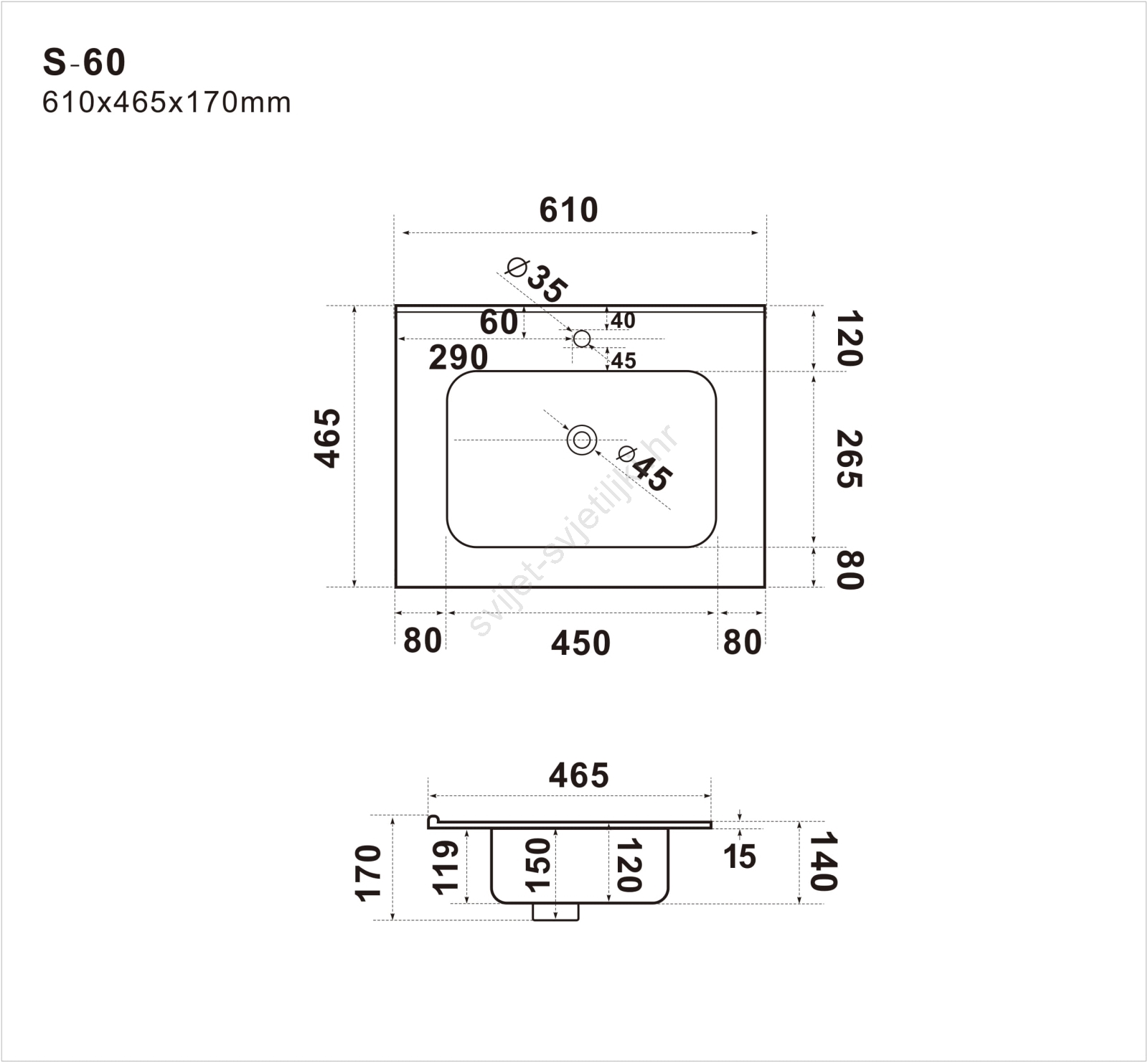 • S otvorom za miješalicu i preljev.