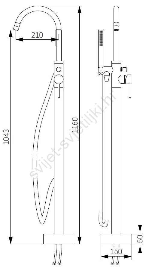 BATH DELUXE 28-114-01-64-00 - Samostojeći set za kadu s baterijom DRAGOR 116 cm sjajna mesing
