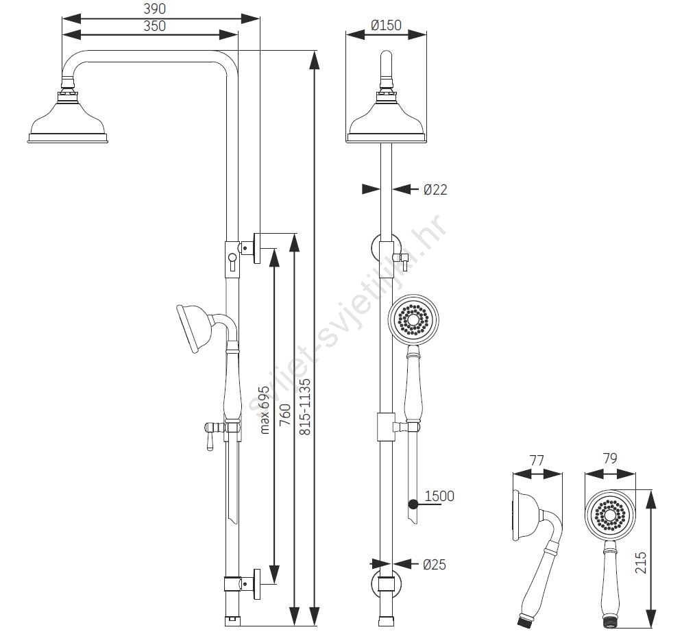 BATH DELUXE 31-120-04-64-00 - Tuš set AEROSKOBING sjajna mesing