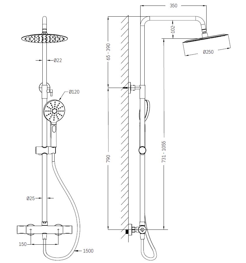 • Set se sastoji od termostatske baterije od masivne mesinga.