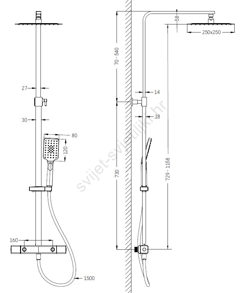 • Set se sastoji od termostatske baterije od masivne mesinga.