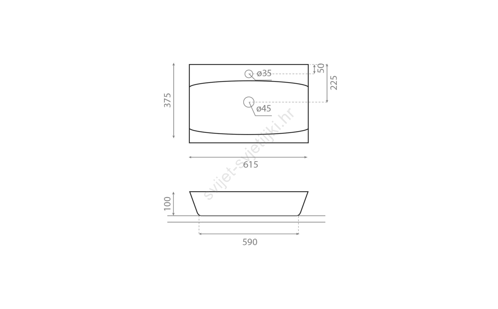 • Pakiranje sadrži umivaonik bez sifona i miješalice.