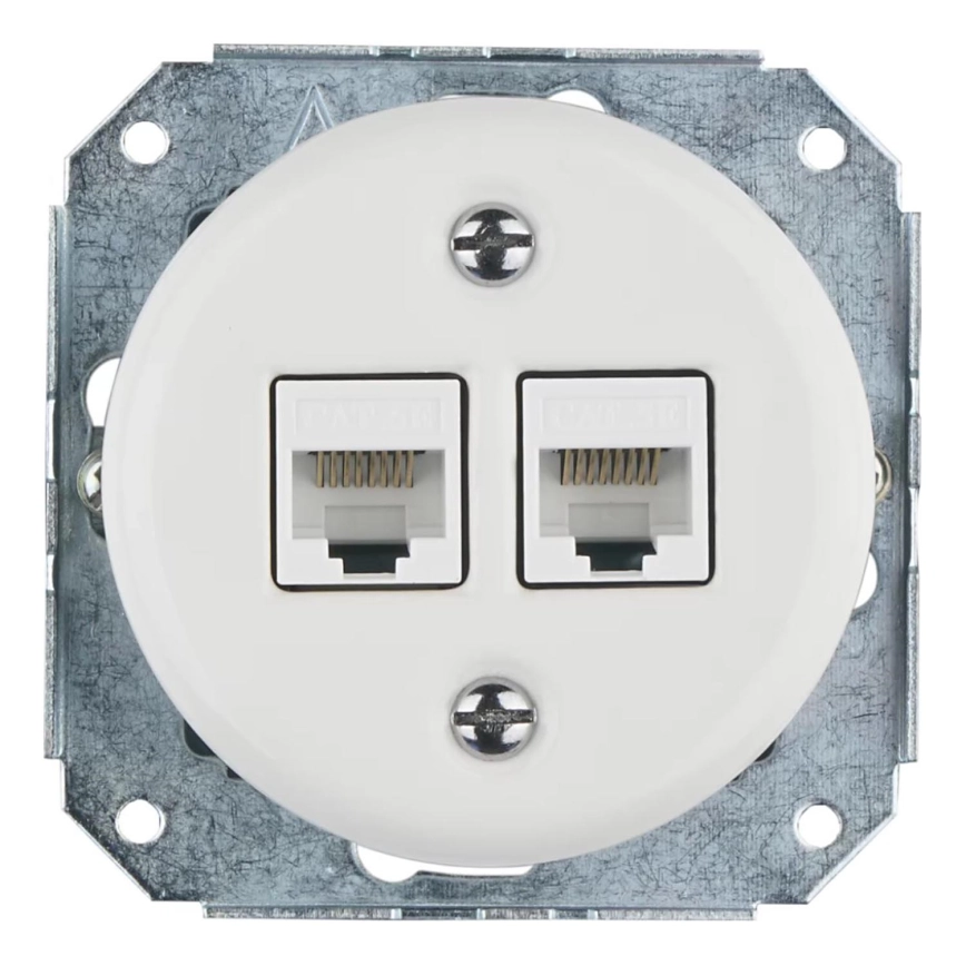 Bohemia-Design -Porculanska retro Ethernet utičnica bez okvira 2x CAT.5E bijela