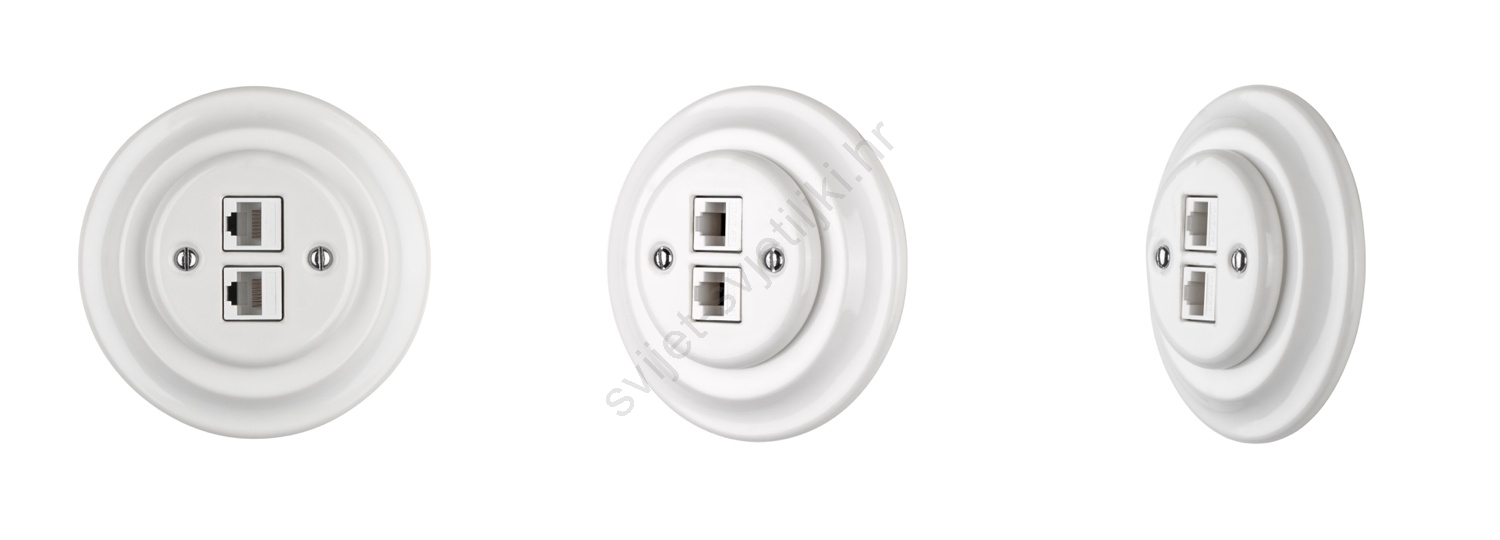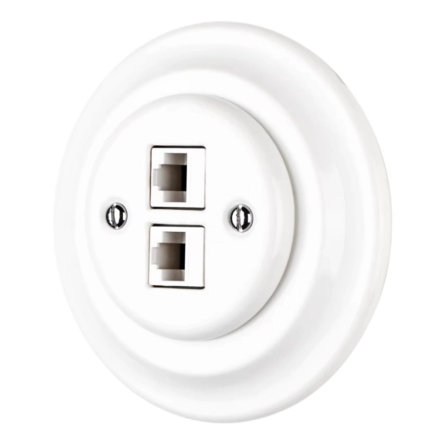 Bohemia-Design - Porculanska retro ethernet utičnica s okvirom 2x CAT5e bijela
