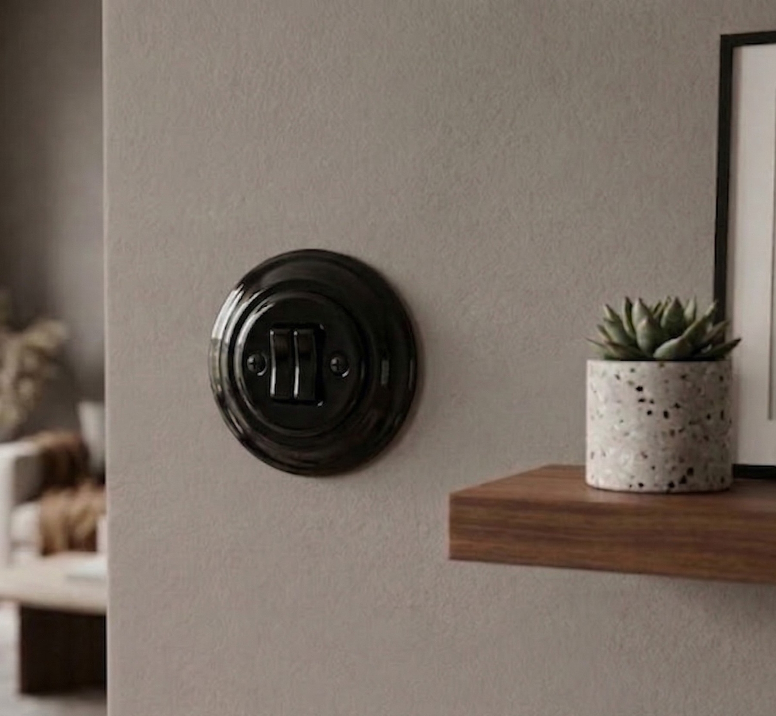 • Bohemia-Design - Porculanski retro dvojni prekidač s okvirom br. 6+6 crni