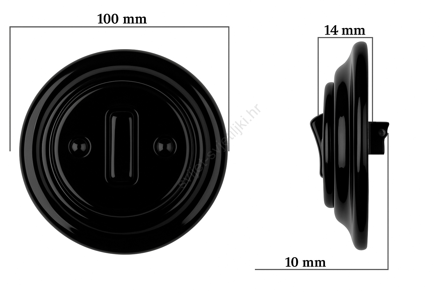 Bohemia-Design - Porculanski retro jednostruki prekidač s okvirom br. 6 crni