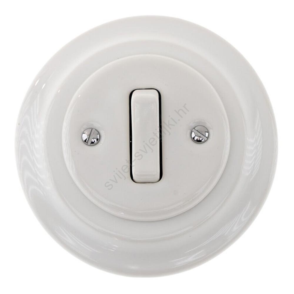 Bohemia-Design - Porculanski retro jednopolni prekidač s okvirom za zvono, bijeli