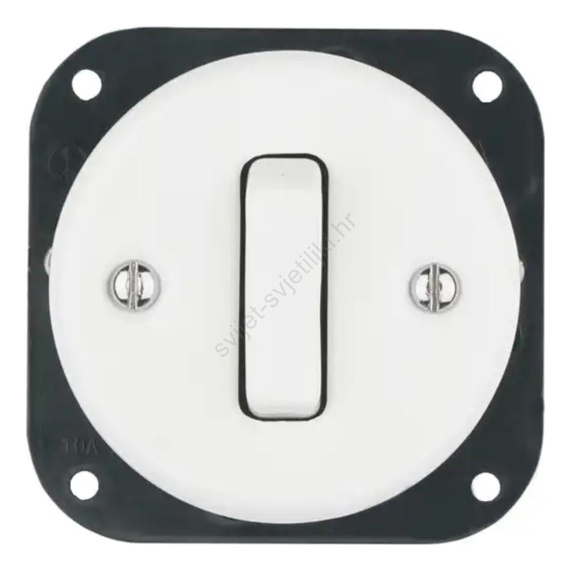 Bohemia-Design - Porculanski retro jednopolni prekidač bez okvira, br. 1, bijela
