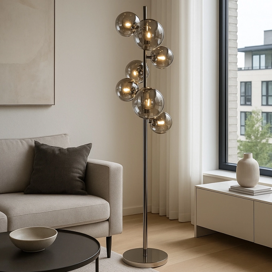 • Brilagi - LED podna lampa MILLA 7xG9/3W/230V crni krom/zadimljeno staklo