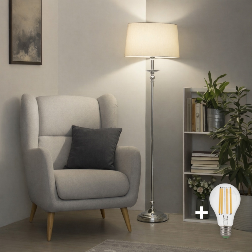 • Brilagi - LED podna svjetiljka CERIA 1xE27/60W/230V Ø 45 cm sjajni krom/bež