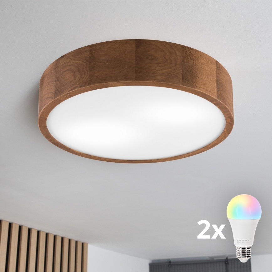 Brilagi - LED RGBW stropna svjetiljka s mogućnošću prigušivanja CARVALHO 2xE27/15W/230V 2700-6500K Wi-Fi hrast pr. 37,5 cm