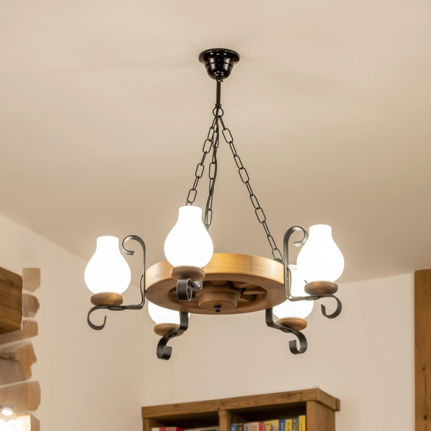 • Brilagi - Luster na lancu ROATA 5xE14/40W/230V promjer 50 cm bukva/orah
