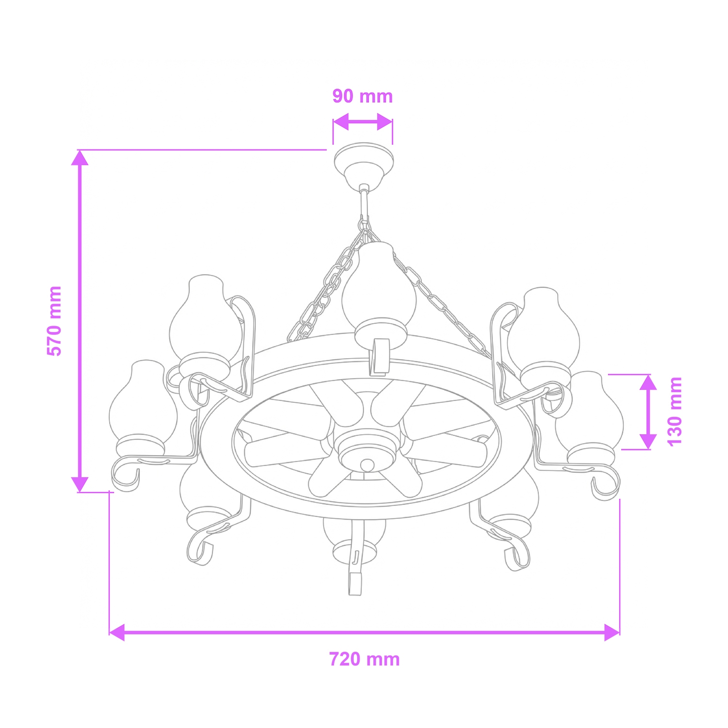 • Brilagi - Luster na lancu ROATA 8xE14/40W/230V, promjer 70 cm, bukva/orah