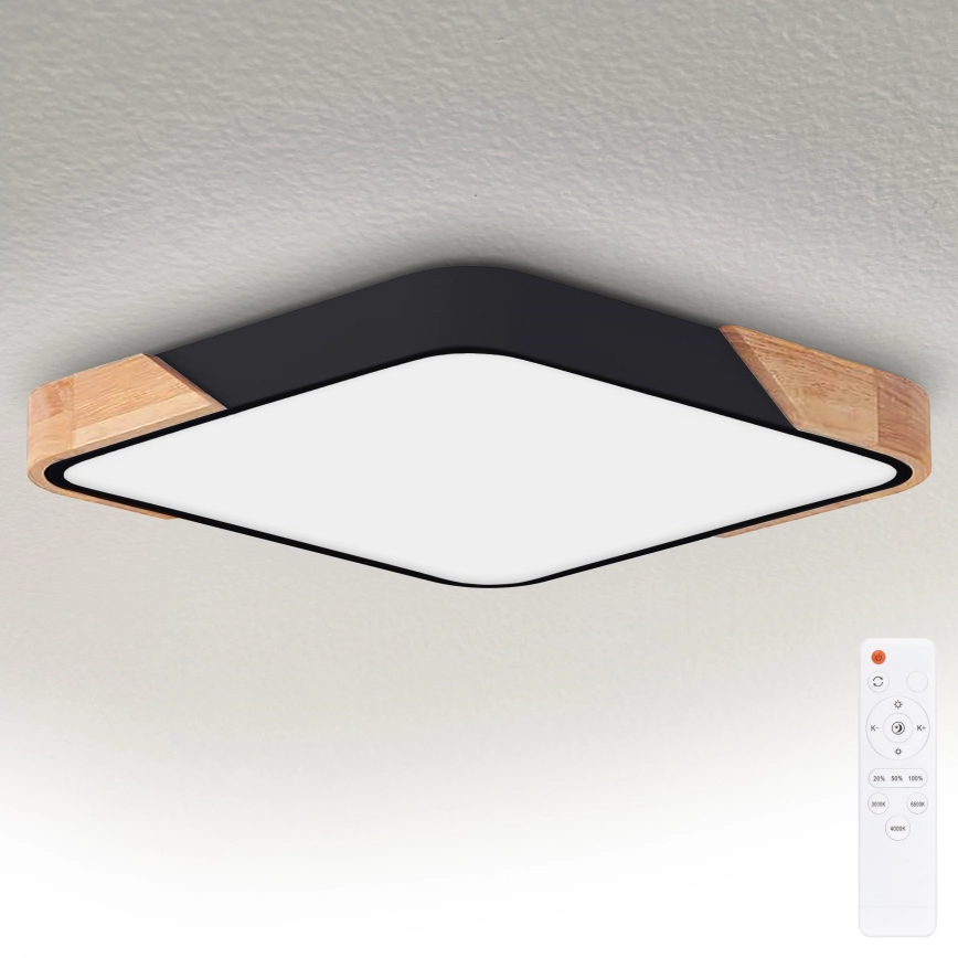 Brilagi - LED prigušivo stropno svjetlo PILANA LED/48W/230V 3000-6500K hrast/crna 56x56 cm + daljinski upravljač