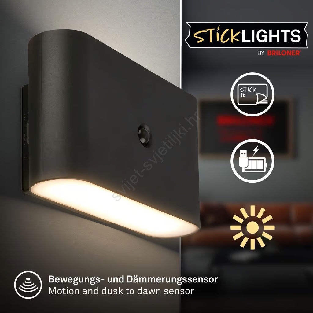 • Briloner 3878015 - Punjiva LED zidna svjetiljka s senzorom pokreta i sumraka CHAT LED/3W/5V 2000 mAh crna