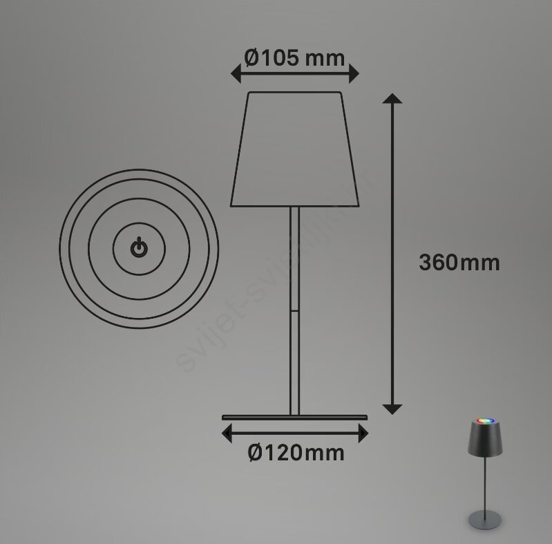 • Briloner 7507015 - LED RGB prigušiva punjiva vanjska stolna svjetiljka 2 u 1 LED/2,5W/5V IP44 1200 mAh antracit