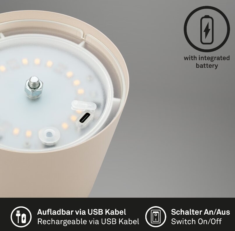 • Briloner 7508011 - LED s mogućnošću prigušivanja punjiva vanjska stolna lampa 2 u 1 LED/2,5W/5V IP44 1200 mAh bež