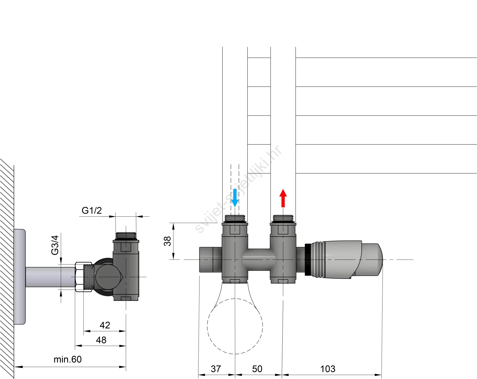 Bruckner - Termostatski priključni set za središnje spajanje WICHER COMBI mat crna