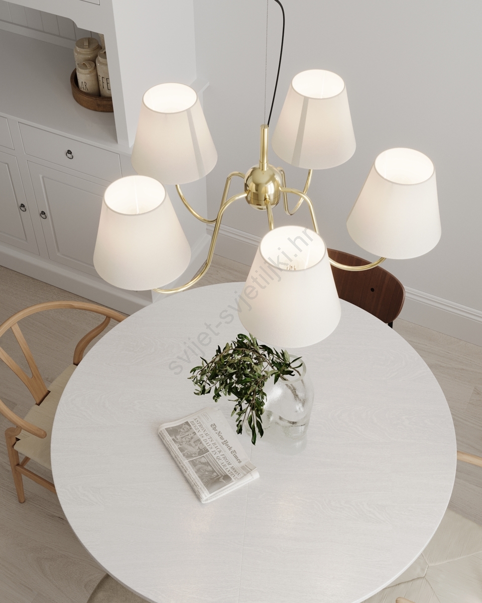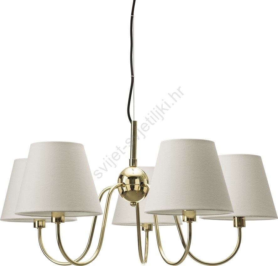 ByRydens - Luster na sajli LYNF 5xE14/8W/230V mesing/bijela karakterizira lijep i funkcionalan dizajn. Za svjetiljku je prikladna žarulja s bazom E14. Ovdje možete kupiti i druge žarulje po povoljnim cijenama. Bit će zanimljiv dodatak Vašem domu.