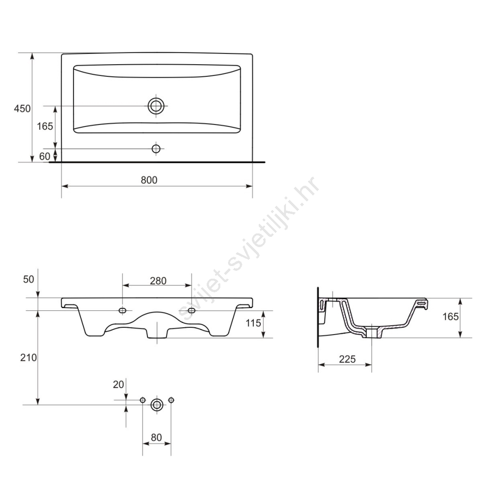 • Pakiranje sadrži umivaonik bez sifona i miješalice.