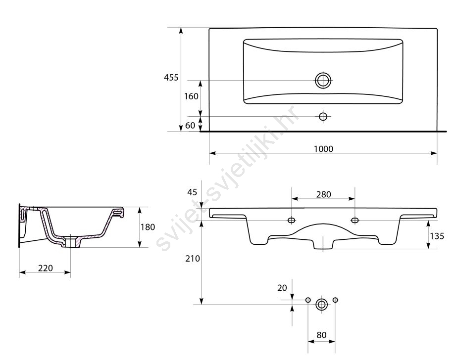 • Pakiranje sadrži umivaonik bez sifona i miješalice.