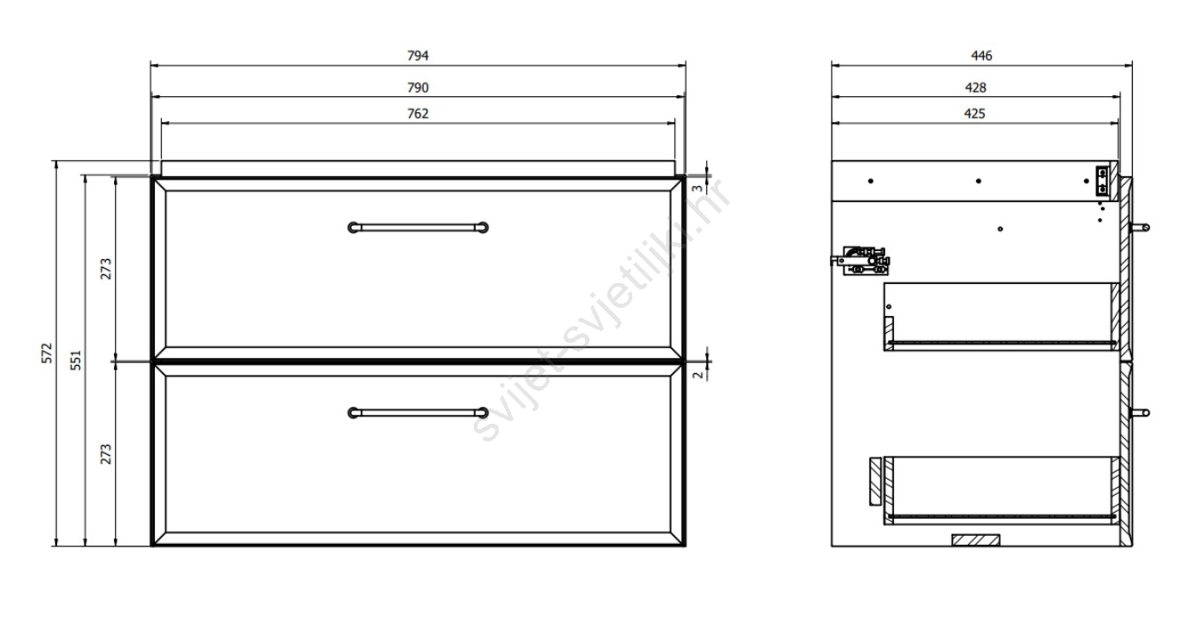 • Ormarić ima dvije prostrane ladice sa sustavom mekog zatvaranja.