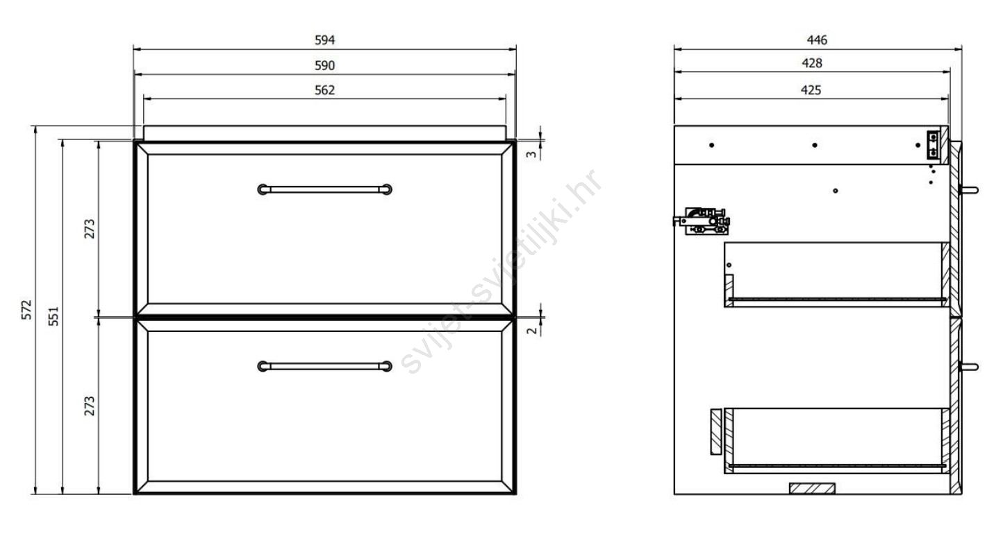 • Ormarić ima dvije ladice s ublaženim zatvaranjem - mehanizam tihog zatvaranja.